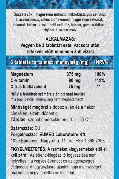 Citrus bioflavonoid, C-vitamin és magnézium tartalmú étrend-kiegészítő tabletta.