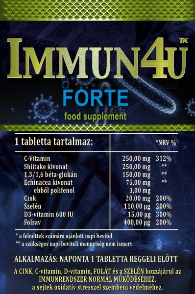 Az IMMUN 4U® Forte a normál immunrendszer működése érdekében lett fejlesztve. Napjainkban aktuálisabb termék, mint valaha bármely étrend-kiegészítő. Bár létjogosultsága mindenkor fontos lett volna egy tudatosan élő ember számára, hiszen a szervezetünk védelmi rendszere elsődleges a test normál működési folyamatai, és az egészségünk megőrzése szempontjából.