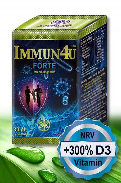 1 doboz IMMUN4U FORTE ® a szervezet jó védekező és hosszútávú ellenálló képességét, a megfelelően erős immunrendszert segítő étrend-kiegészítőt / 1 havi adagos kiszerelésben
